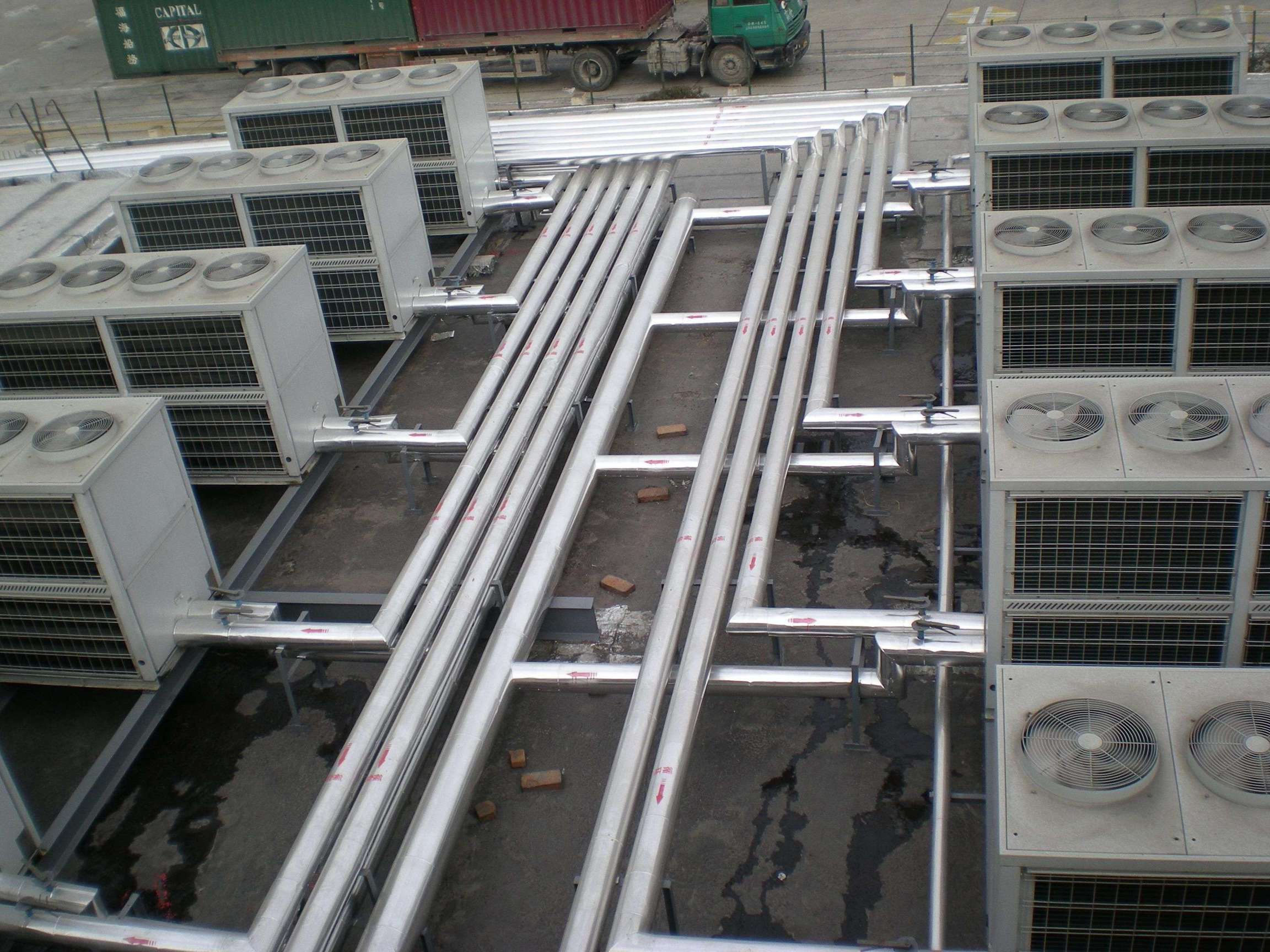 上港集團(tuán)軍工路分公司原先采用煤鍋爐作為淋浴熱水的熱源,現(xiàn)改用天舒空氣源熱泵系統(tǒng)24匹共12臺(tái),每天供應(yīng)200噸55℃的生活熱水,滿足員工熱水需求。工程所在地區(qū)有低谷用電的用電政策,系統(tǒng)在初期設(shè)計(jì)時(shí)考慮到機(jī)組集中運(yùn)行時(shí)間在全年絕大部分時(shí)間內(nèi)放在谷電階段。機(jī)組的使用效果很好,通過(guò)檢測(cè)平均全年的熱水加熱成本為4.8元/噸水。每年為港務(wù)公司節(jié)約95萬(wàn)元運(yùn)行費(fèi)用。